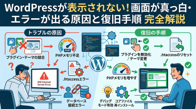 WordPressが表示されない原因と対処法を初心者向けに解説|真っ白・エラー画面の復旧手順まとめ